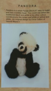 Materials: Black Mohair 27cm x 22cm, White Mohair 21cm x 16cm, 10 cm x 8cm Velour for paws and pads, 6mm black glass eyes, 5 x 16mm joints
