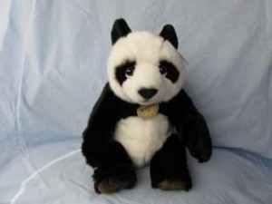 Panda is very sleek and soft black and white acrylic fur with dark brown paw pads. A very chubby bear
